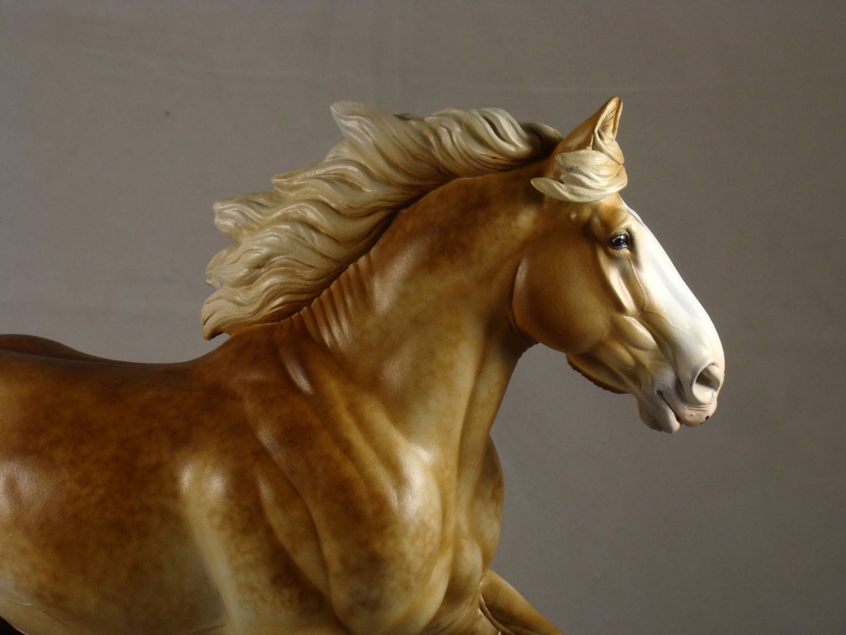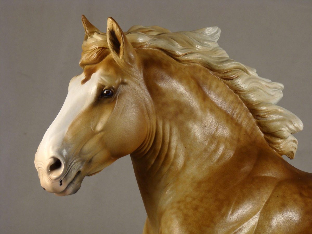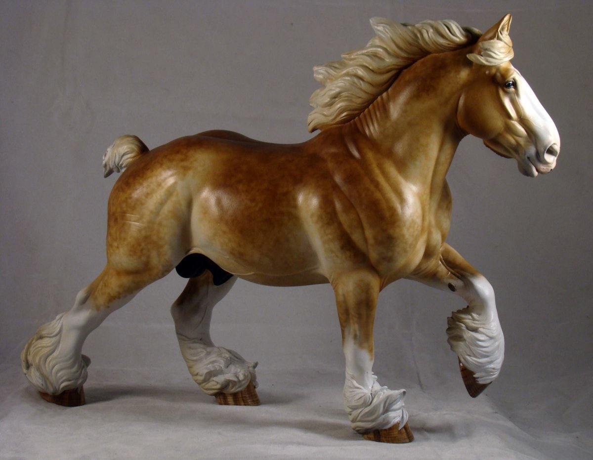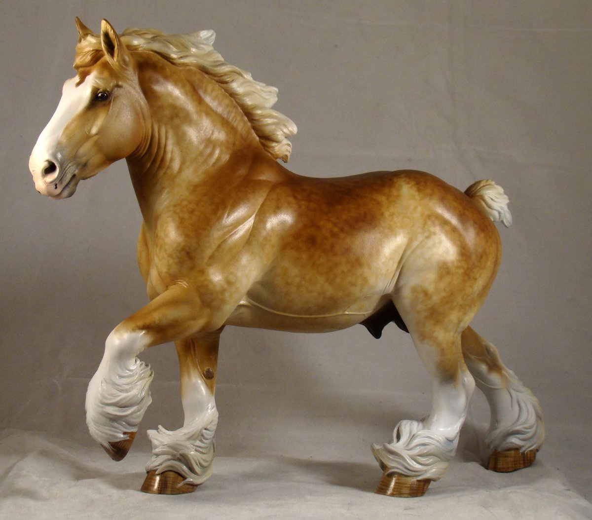 North American Nationals (NAN) NAN 2014 Auction Lot 6: Sarah Rose's "Andre" as a Belgian Stallion in Dappled Chestnut. Airbrushed Acrylic with hand-painted detail. Andre is an exciting new traditional scale sculpture from Sarah Rose! He is a big boy, standing at 7 1/4" at the wither, which would be a bit over 16 hands if he were a real horse. At his tallest point he is 10" and is approximately 12 1/2" long from the back of his right rear leg to the tip of his cute wrinkle nose! Andre is meant to depict a heavy European draft horse of no specific breed. These stout and chunky horses were the original tractors. He could represent a variety of breeds including the Ardennes, Breton, old style Belgian, heavy type of Comtois, and others. A post with a section about this body type can be found on the Rose Studios Blog. Andre is traditional scale, and is hollow cast in artist's quality urethane resin with steel reinforced legs by Rose Studios. Andre Donated by: Sarah Rose of Rose Studios http://rosehorse.com/ Finishwork Donated by: Nan Wagner of Mystic River Studio, Painting and Restoration https://www.facebook.com/MysticRiverStudio 100% Donation