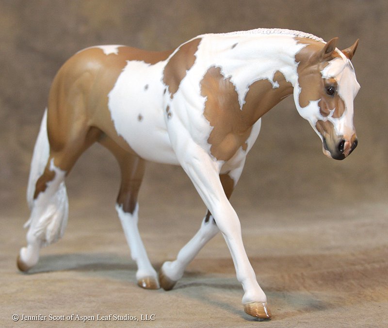 I am donating my most recent resin release "Darling" which is a traditional scale young HUS stock horse mare. This is not your rancher's stock horse, but the more modern show type with all that TB breeding mixed in there. She is number two in my "Performance Horse Series" line of resins and will be limited to 65 unpainted pieces total. I will retain 15 to paint myself. She is hollow-cast with wire-reinforcements. She will be painted up a dunalino with tovero pinto markings. I use oils with accents and enhancements in acrylic, pigment, and color pencil to achieve a buttery smooth rich finish that is amazingly lifelike as well as durable.