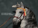Traditional PRE Halter, brown leather, fit for Alborozo and other similar sized horses. Browband and custom made rosette in Spain's national colors of red and yellow, with a single ring padded metal nosepiece and round braided cord lead. ![]() | |||||