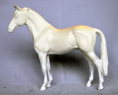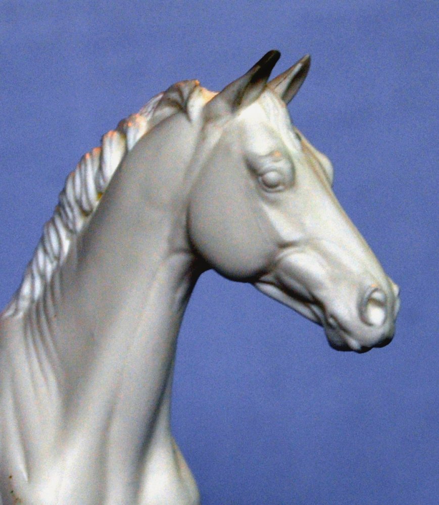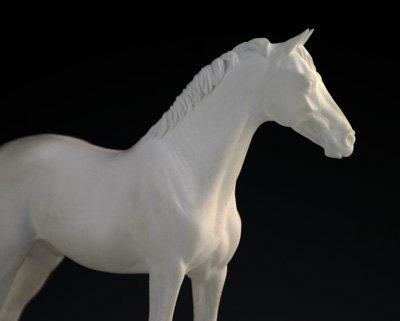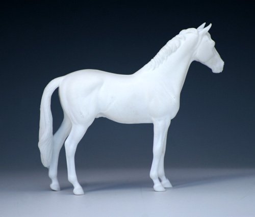 This lovely curio sized Hanoverian stallion resin was created by Deb McDermott. She sculpted it for Collecta, a company that is producing collectible toys and retained the right to produce an edition of resin casts from the project. She further detailed this horse for production in resin by refining the legs, smoothing and adding veining. The edition is limited to 1000 casts. This horse is a solid cast in artist's resin and stands 4 3/4" at the highest point. Customizing this model is only permitted on the condition that you do not cast the resulting piece.
