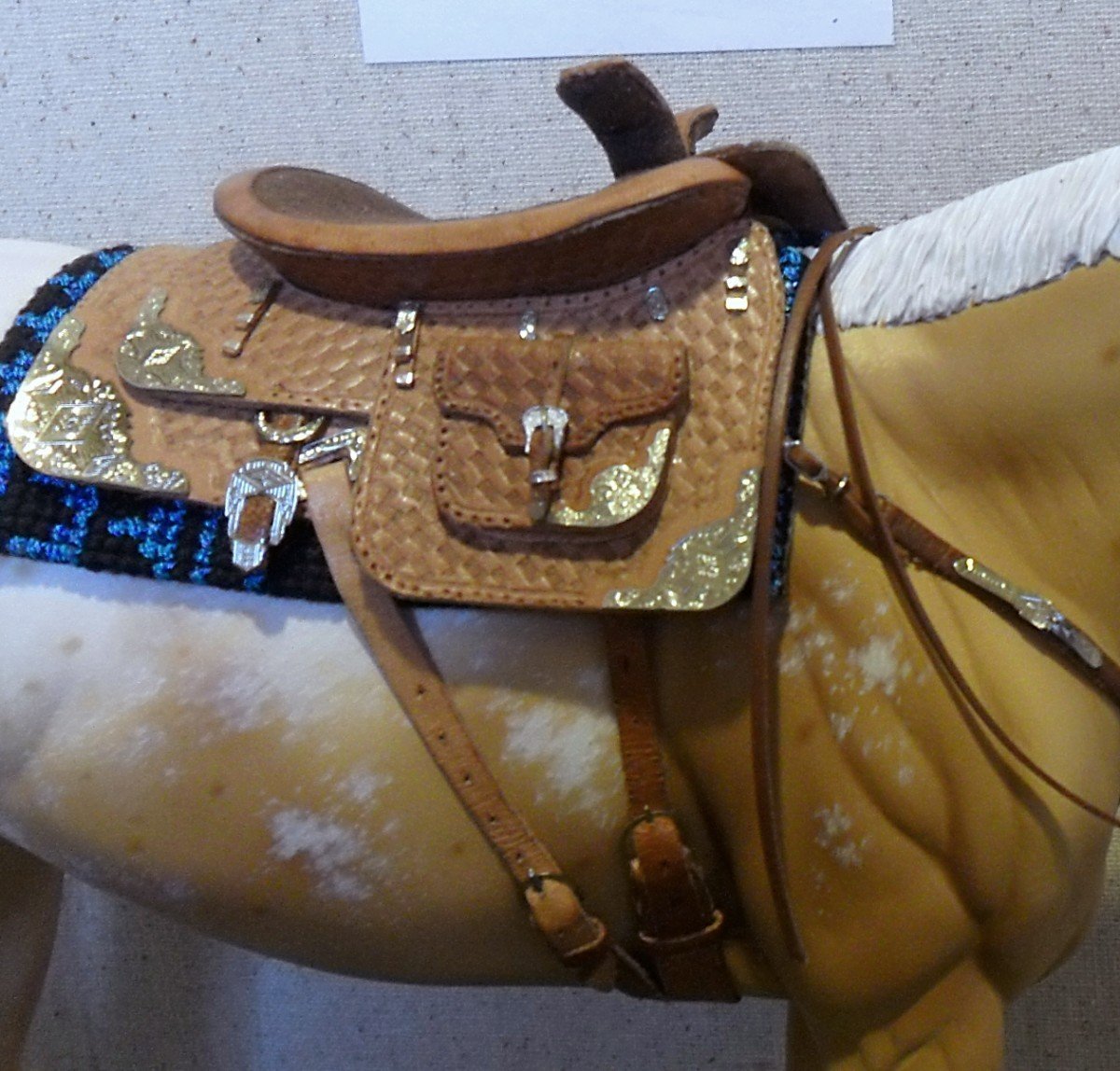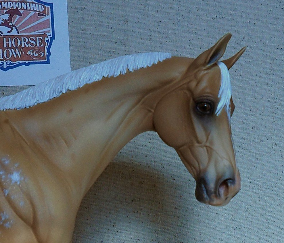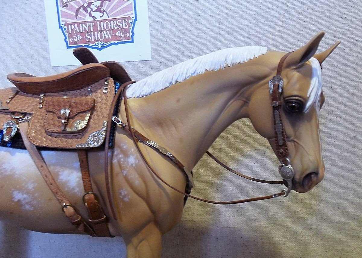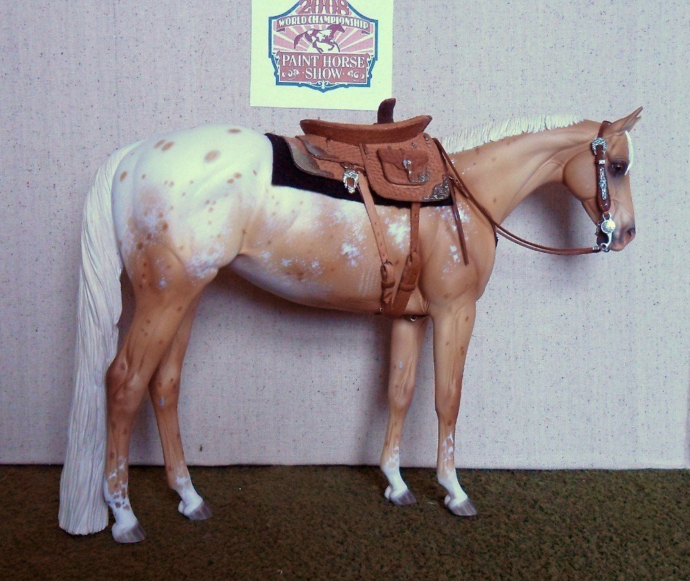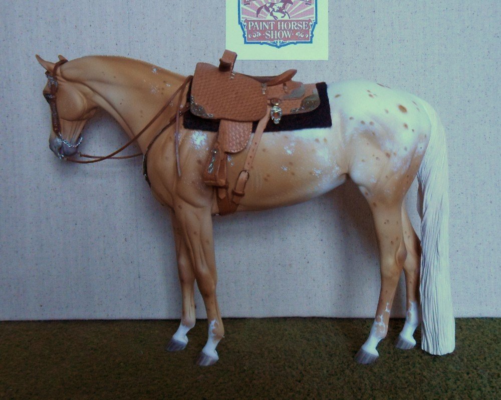This is an excellent opportunity to add to your western performance show string! "At First Glance" is a Williams Victrix resin with new main/tail/forelock painted by Lyn Norbury into a detailed appaloosa. She comes with her own western sidesaddle set, created by Lyn.